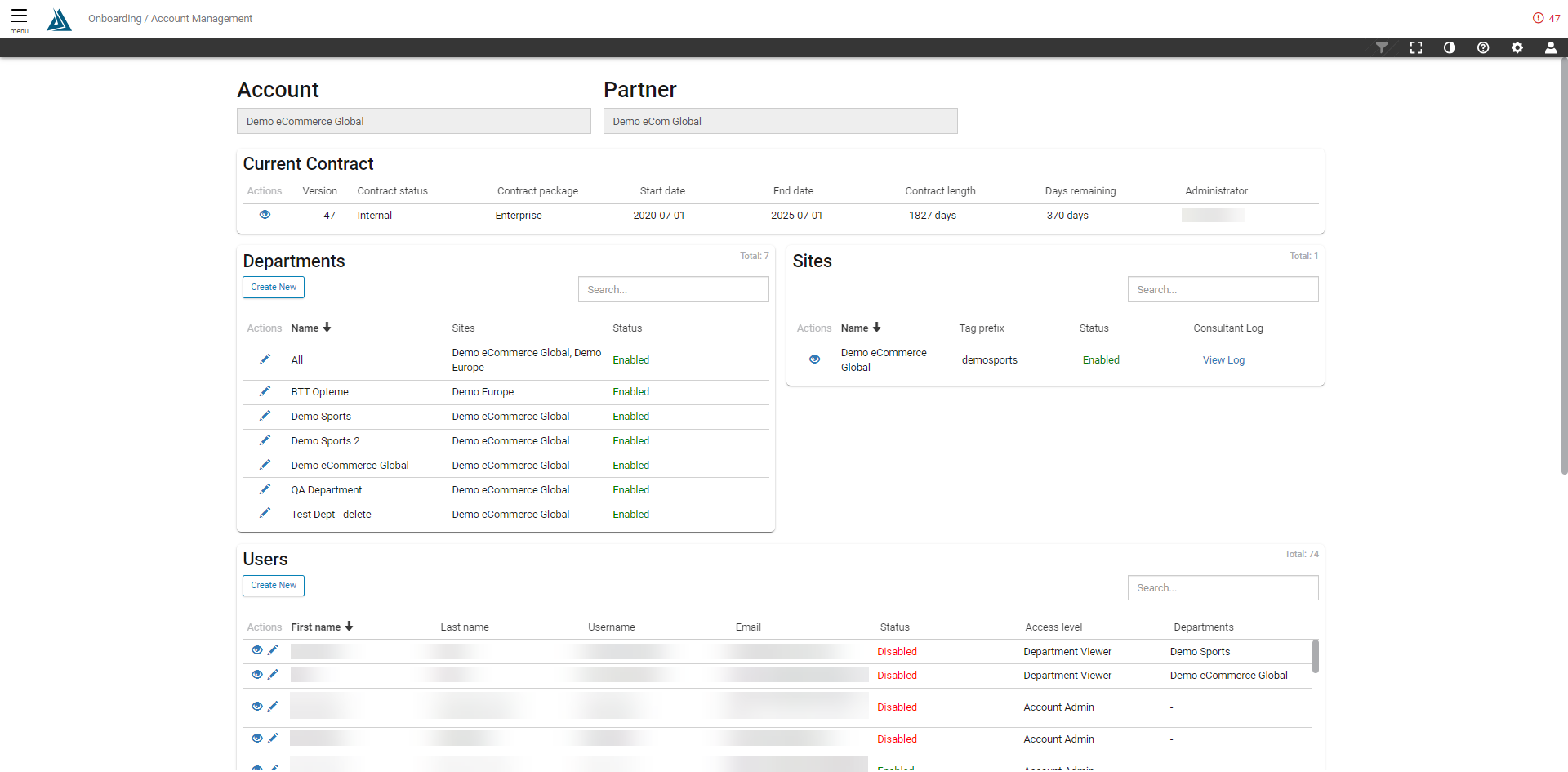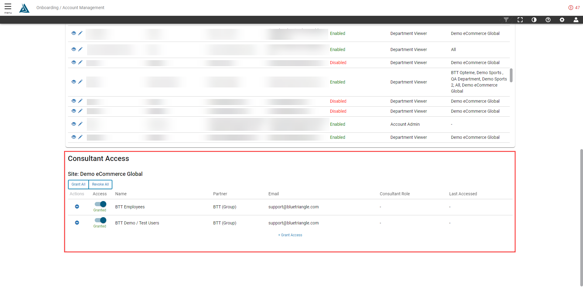 The Account Management page is a dashboard of account details. For more information on Consultant access and who has access to this page, please see this article.